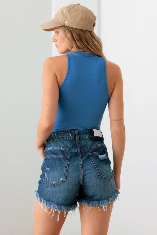 Pantalones cortos de mezclilla desgastados rotos de cintura alta azules